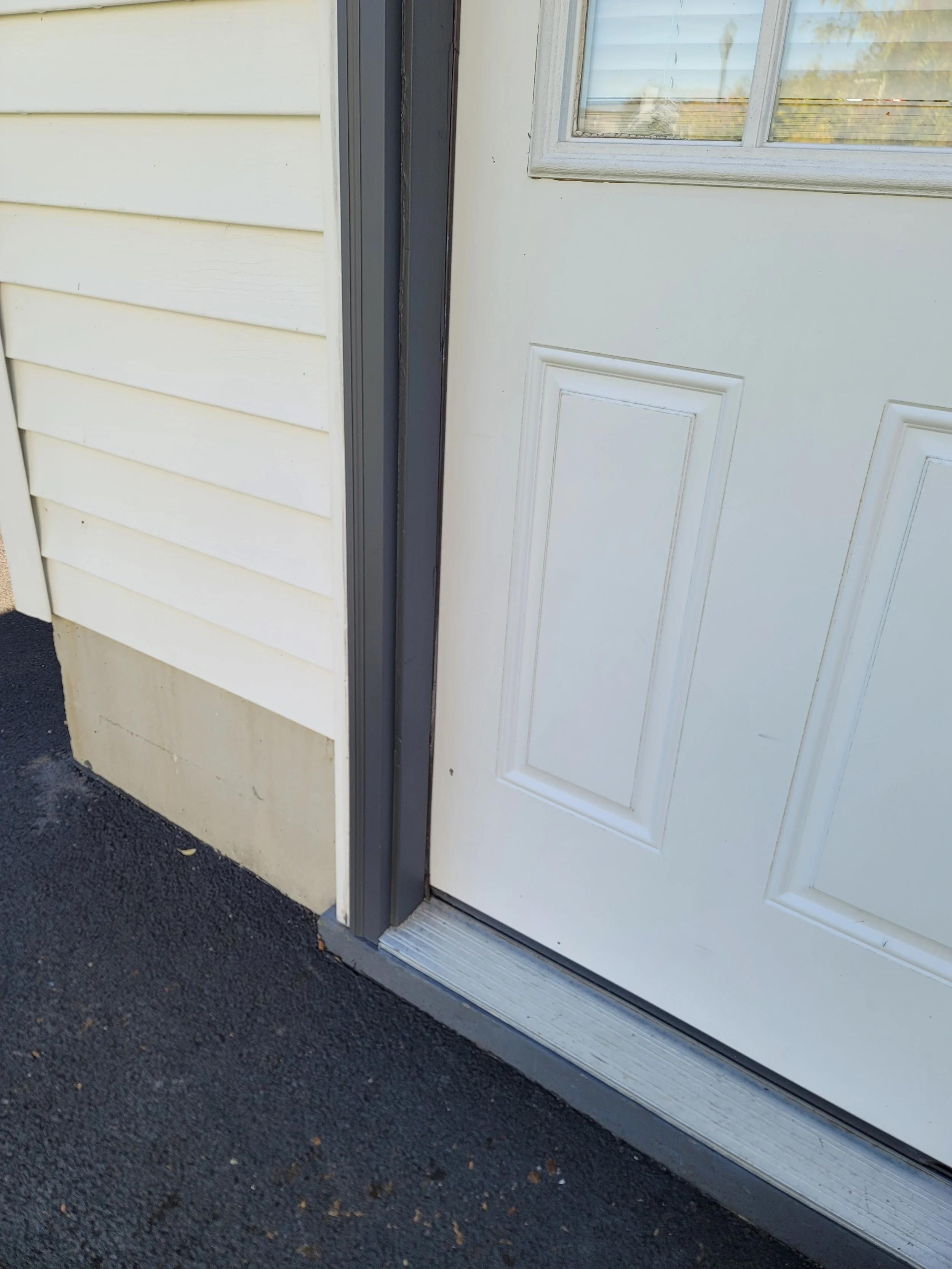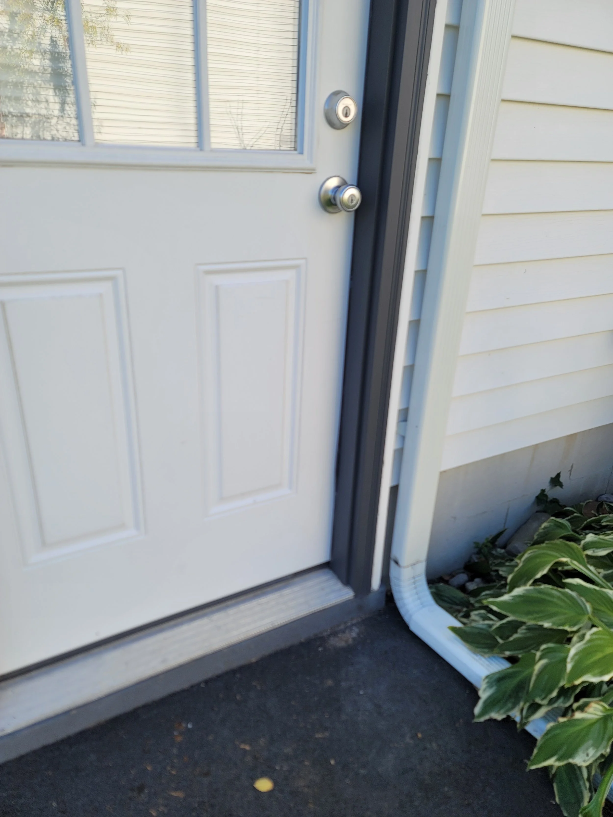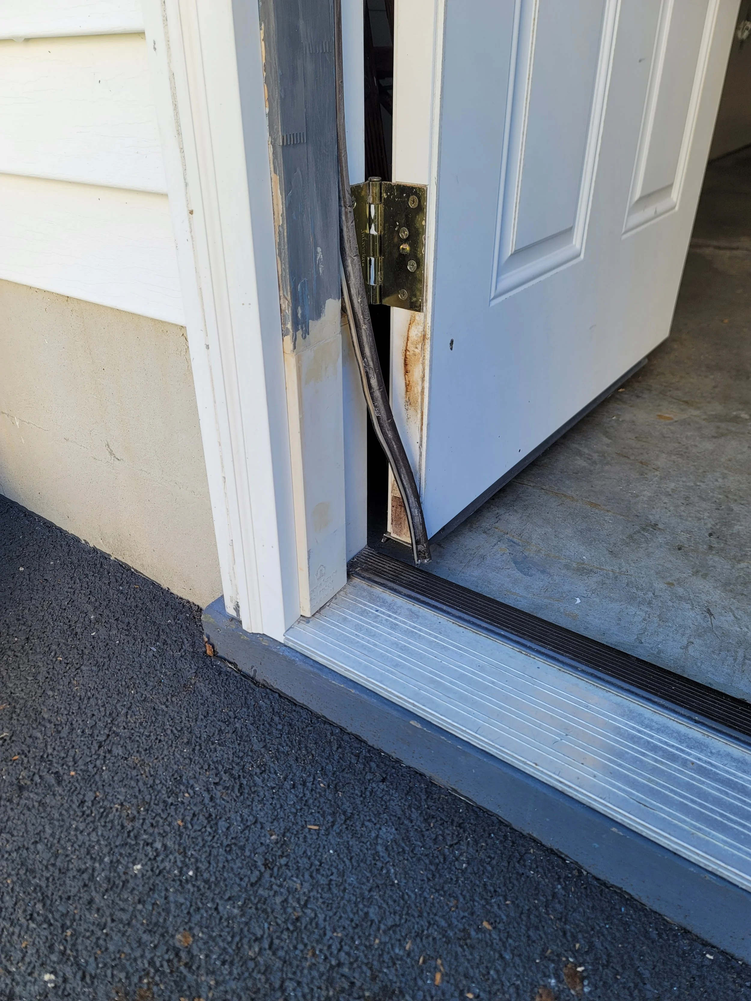 Completed lower rot repair of exterior door jamb with new pvc trim and paint