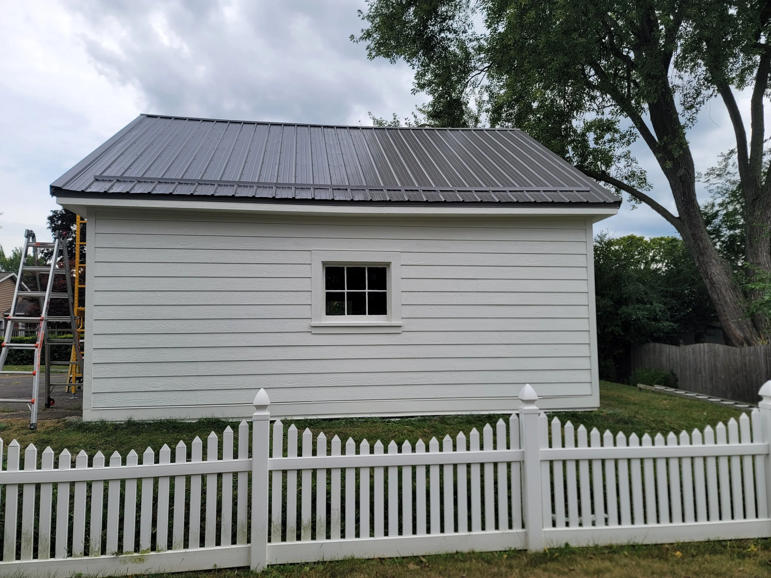 After complete remodel of detached garage - LP Smart Side, Metal Roof, window repair