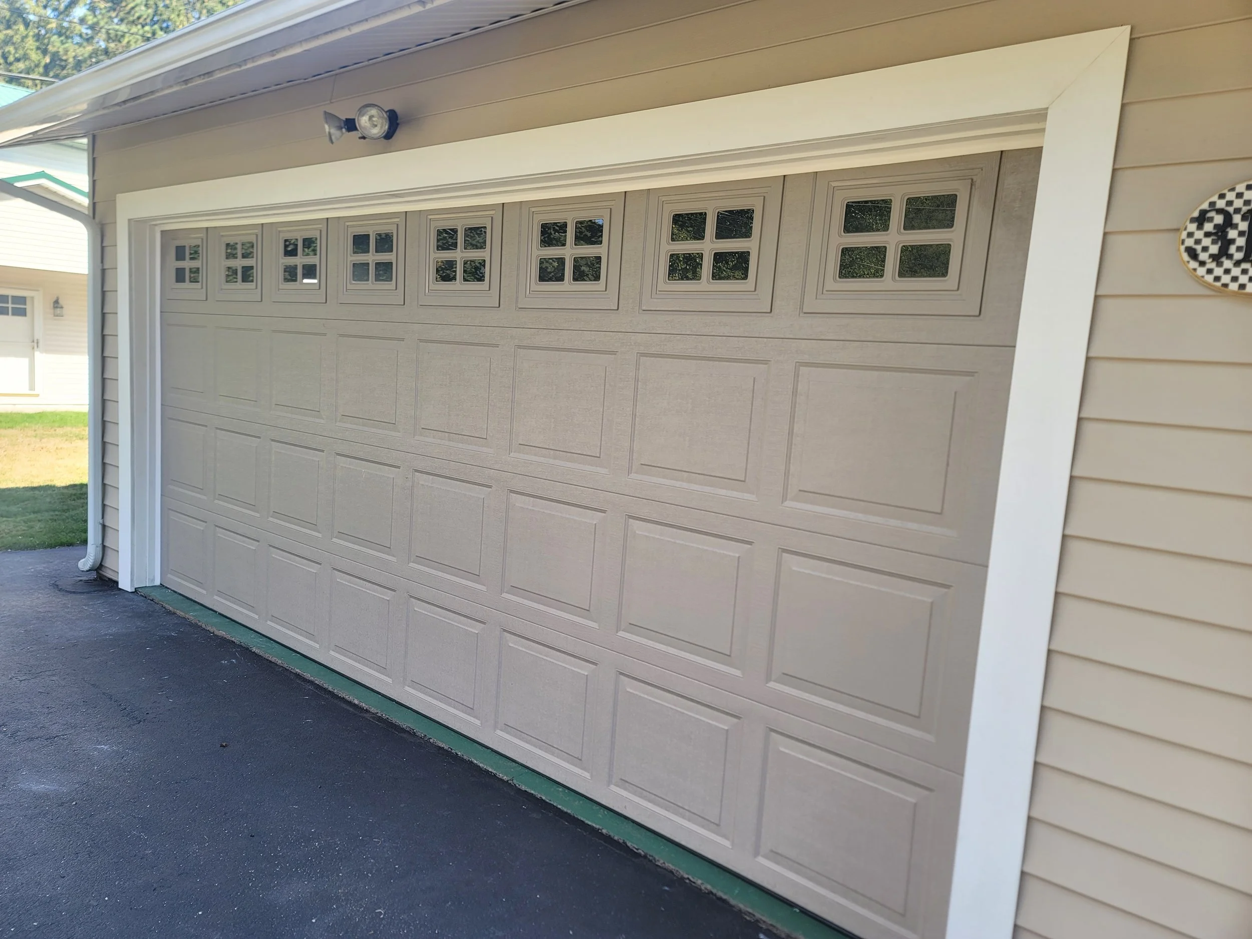 Garage Door Trim rot removal. Remove 45 degree detail back to square frame. New pvc trim that will not rot.